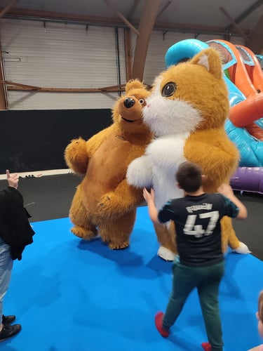 Parc en Folie propose chaque année des activités variées : structures gonflables. La mascotte ajoute une touche de magie à cet univers plein de rire et d’amusement.